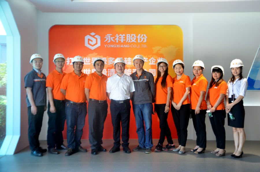 5月24日,通威集團(tuán)人力資源部部長易繼成,成都好主人寵物食品副總經(jīng)理?xiàng)詈楹<啊昂弥魅恕备吖軋F(tuán)隊(duì)在永祥多晶硅汪云清副總經(jīng)理、傅經(jīng)理等領(lǐng)導(dǎo)的陪同下參觀永祥多晶硅。