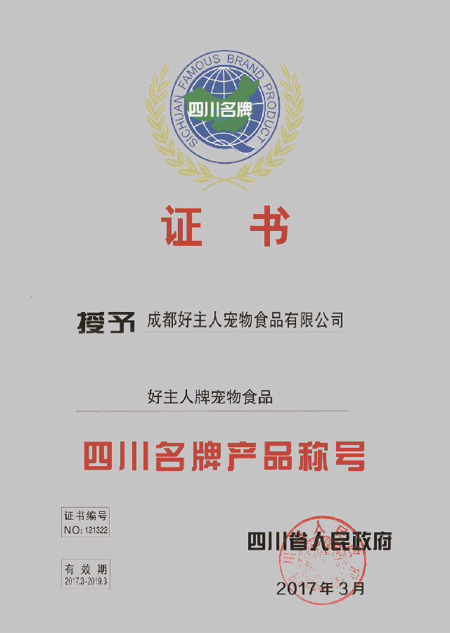好主人寵物食品有限公司在第十二屆四川名牌評(píng)選中脫穎而出,榮獲四川名牌產(chǎn)品稱(chēng)號(hào),這是對(duì)好主人寵物食品有限公司一直以來(lái)堅(jiān)持“品質(zhì)強(qiáng)企,生產(chǎn)安全寵物食品”理念的認(rèn)可和鼓勵(lì)。自好主人2000年成立伊始,便始終貫徹劉漢元主席的指示“努力將好主人打造為亞洲領(lǐng)先、全球一流的前瞻概念工廠和示范工廠!”2017年,全亞洲規(guī)模最大、最新生產(chǎn)線(xiàn)的順利投產(chǎn)、國(guó)際先進(jìn)設(shè)備的引進(jìn),不斷推動(dòng)企業(yè)以高效率、高產(chǎn)能、高品質(zhì)的生產(chǎn)要求發(fā)展,以最終實(shí)現(xiàn)好主人由生產(chǎn)高品質(zhì)產(chǎn)品向打造國(guó)際一流品牌的轉(zhuǎn)變。