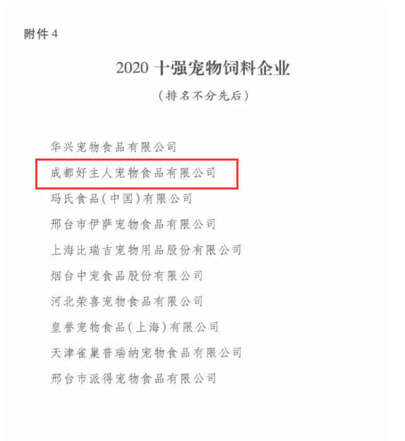 近日,中國飼料工業(yè)協(xié)會發(fā)布公告,對2020年先進(jìn)集體和先進(jìn)工作者評選結(jié)果進(jìn)行公示,好主人公司榮膺“2020十強(qiáng)寵物飼料企業(yè)”榮譽(yù)稱號。