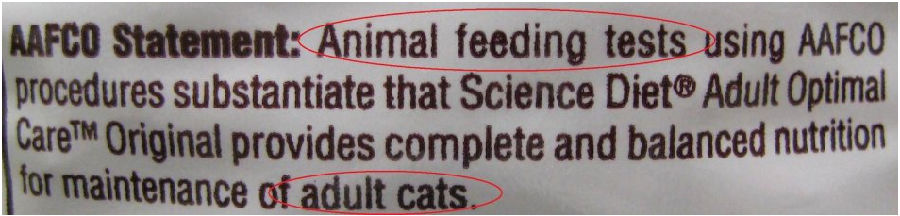 制定方法包括做配料的營養(yǎng)成分分析和在貓咪特殊生活階段,與AAFCO的營養(yǎng)要求比對。在此出售前不會喂食任何活的動物來做試驗。