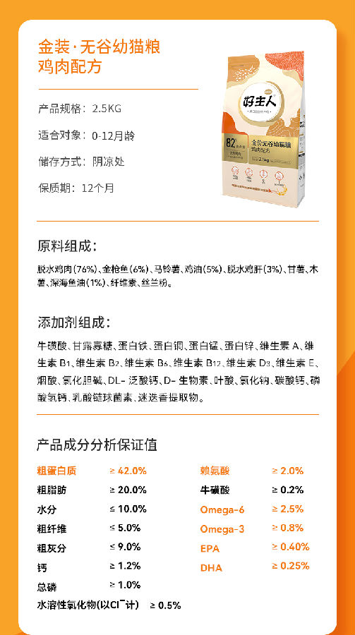 好主人金裝無(wú)谷幼貓糧